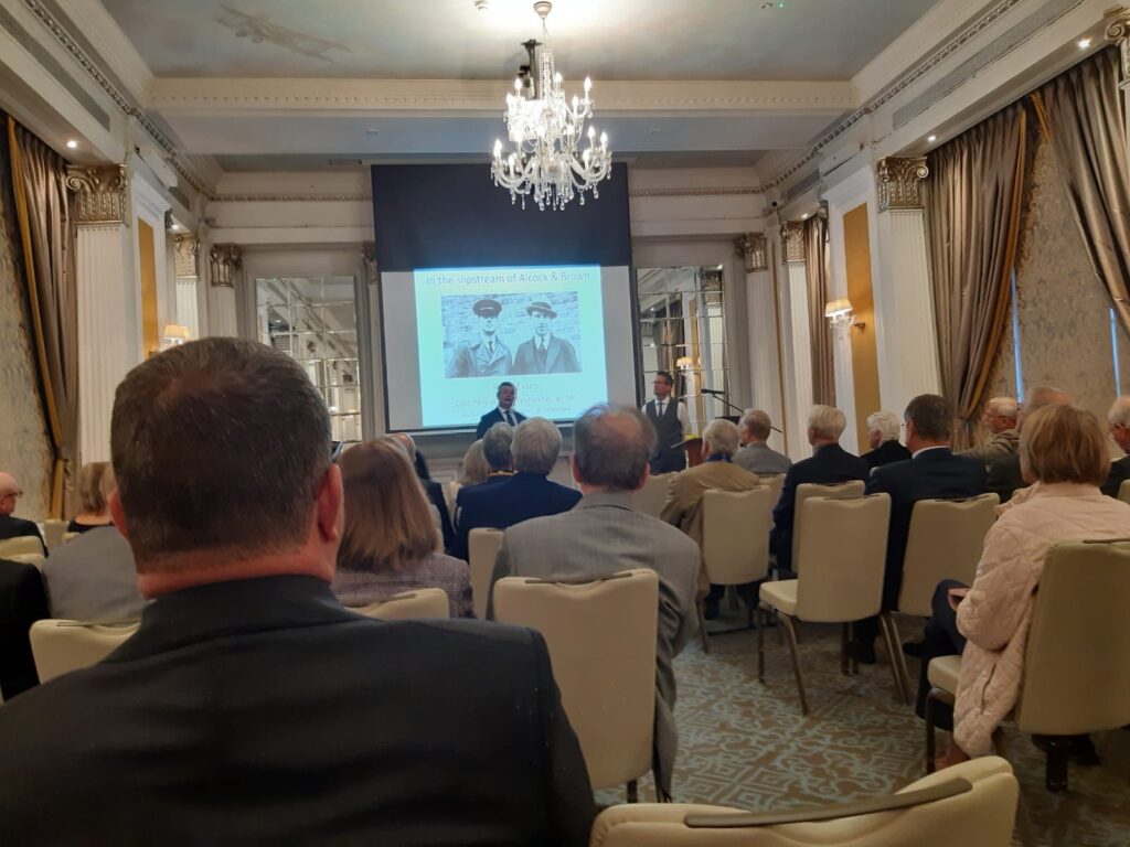 This year’s Cobham Lecture, hosted by the Honourable Company of Air Pilots at the RAF Club on 22 April, was given by Rob Evans, a Commercial Airline Pilot, entitled ‘In the Slipstream of Alcock and Brown’. John Alcock and Arthur Brown were British aviators who, in 1919, made the first non-stop transatlantic flight. To find out more about this amazing pair of aviation pioneers do visit https://en.wikipedia.org/wiki/Transatlantic_flight_of_Alcock_and_Brown
